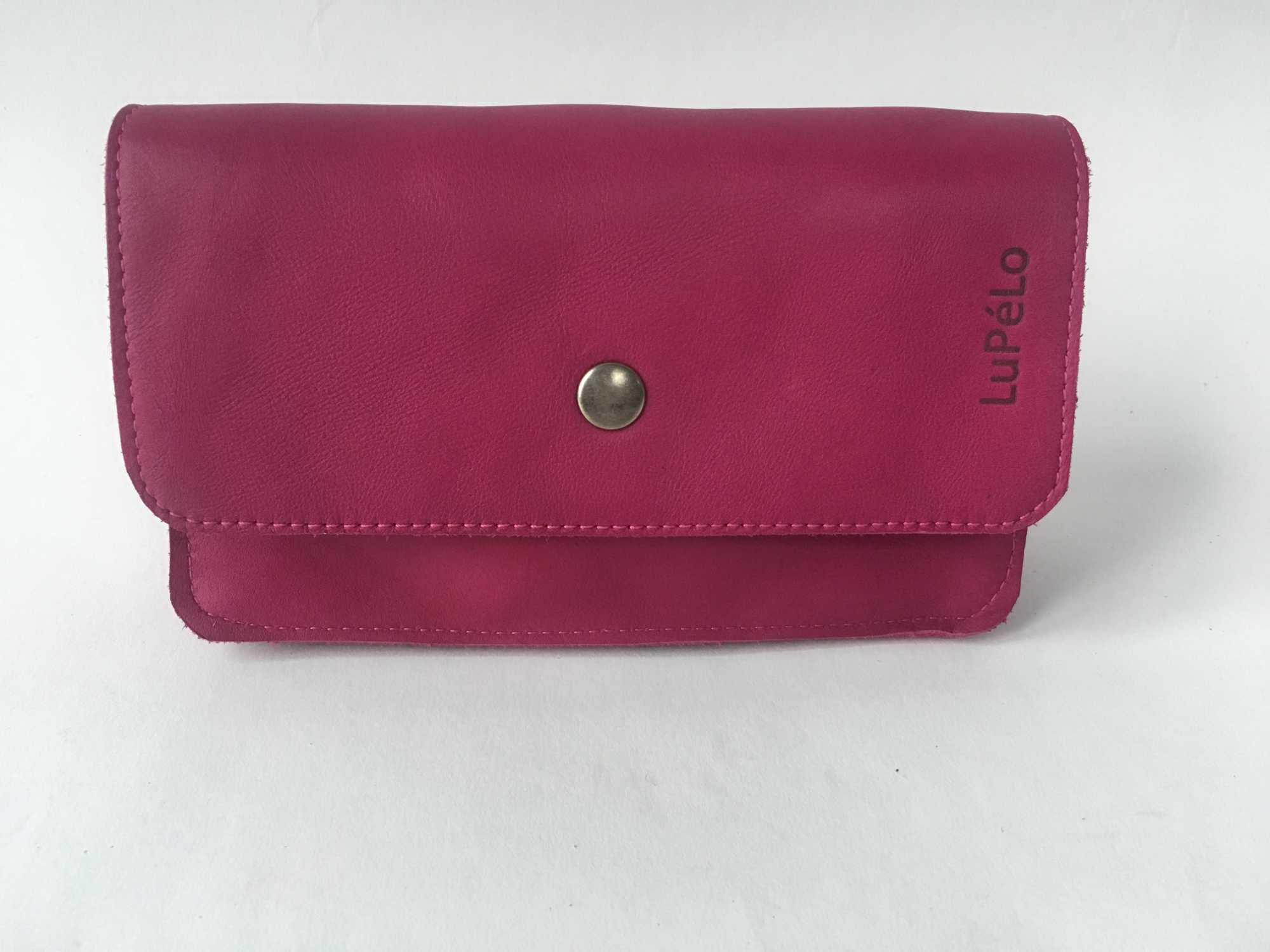 LuPéLo portemonnee van fuchsiakleurig leer, voorzien van 3 vakken, waarvan één met rits en apart pasjesmapje.