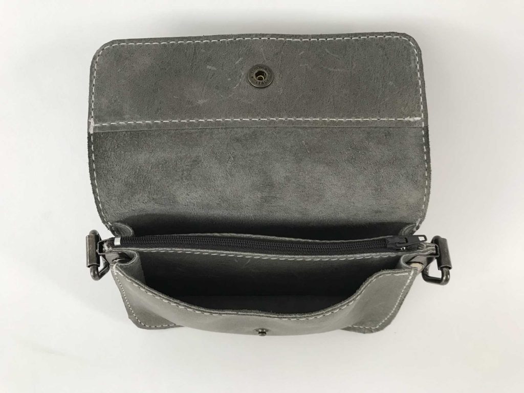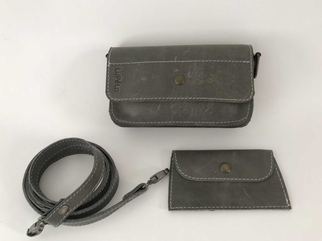 LuPéLo leren schoudertas. Het kan tevens dienen als portemonnee. De tas heeft 2 binnenvakjes en een ritsvakje (voor muntgeld). De schouderband is afneembaar d.m.v. musketonhaken. De portemonnee heeft een los mapje waar pasjes in opgeborgen kunnen worden.