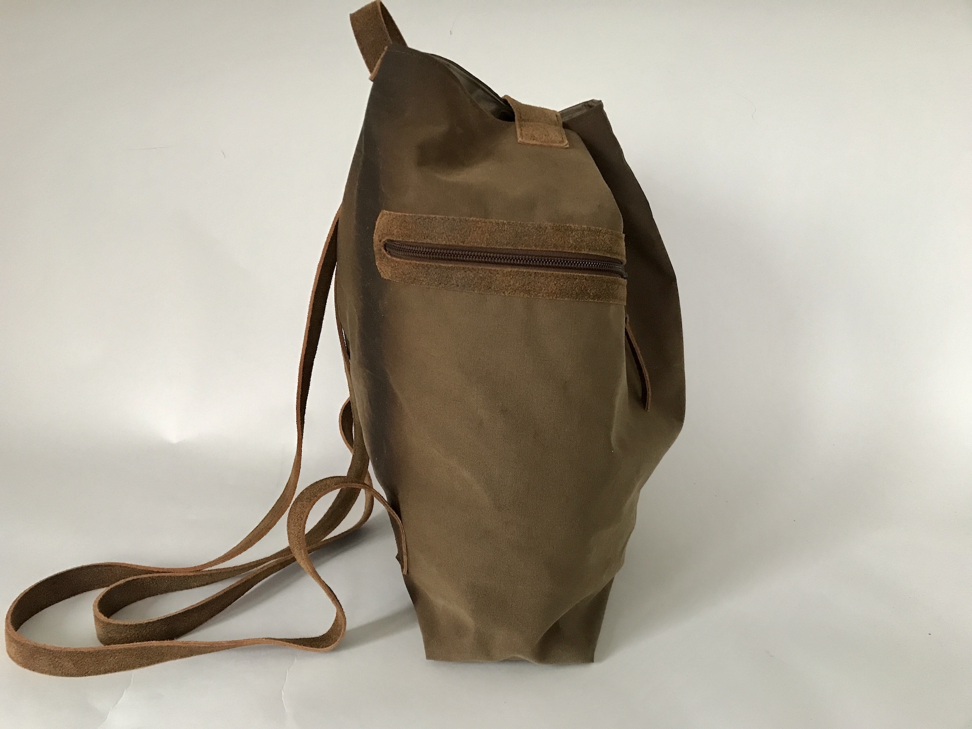 LuPéLo rugtas/schoudertas, gemaakt van het doorwaaide zeil van de windmolen en gevoerd met een stevige glanzende tassenvoering.. De tas heeft een ritsvak aan de buitenkant en opbergvakken in de tas.