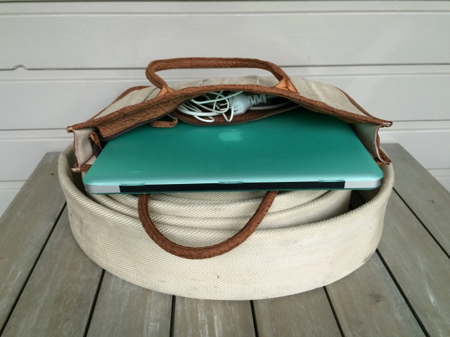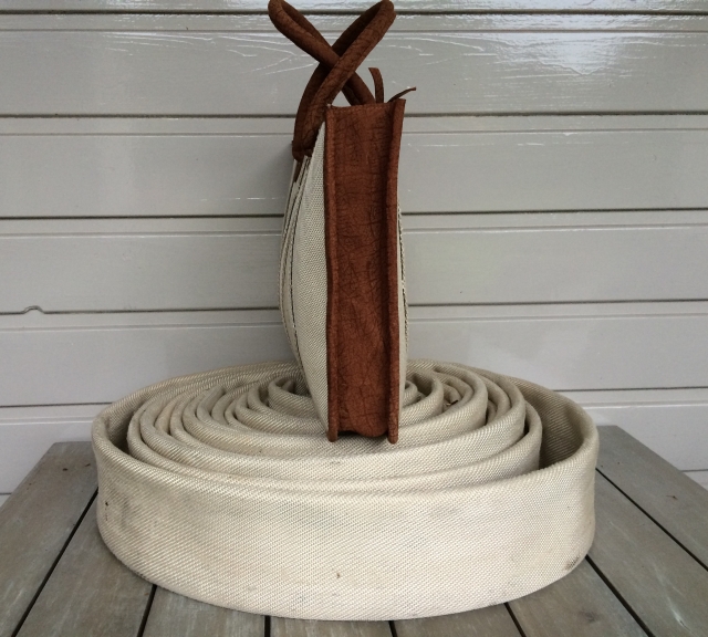 LuPéLo werktas, gemaakt van een gebruikte brandweerslang in combinatie met bruin leer. De tas is gevoerd en voorzien van een beschermlaag voor de PC. De tas heeft een leren opbergvak met rits. De tas sluit met een rits en heeft korte, leren hengsels.